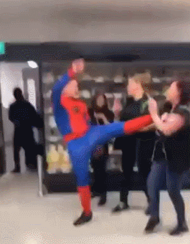 恶作剧?英国“蜘蛛侠”强闯超市制造混乱 直播连踢带打画面